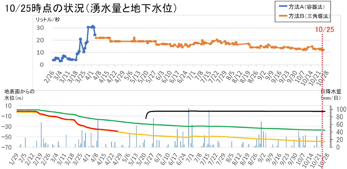 Trends in the amount of water flowing out and the underground water level (Source: JR Tokai)
